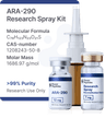 ARA-290 is a synthetic, nonerythropoietic peptide derived from erythropoietin, examined in laboratory research for receptor interactions, signaling pathways, and experimental modeling of metabolic and neural mechanisms. The included spray kit allows laboratory personnel to evaluate alternative delivery methods, solution stability, and comparative dispersion. For research use only. Not for human consumption.