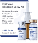 Epithalon (also called Epitalon or AEDG) is a synthetic tetrapeptide studied in laboratory research for its molecular interactions, peptide stability, and signaling activity. The included spray kit provides laboratory personnel with the ability to evaluate alternative administration methods and conduct comparative studies on dispersion and solution behavior. For research use only. Not for human consumption.
