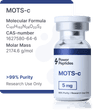 MOTS-c is a revolutionary mitochondrial-derived peptide that has been extensively researched for its potential health benefits. This peptide is a promising candidate for various therapeutic applications, including metabolic regulation, neuroprotection, and anti-aging effects. MOTS-c is a naturally occurring peptide that is encoded by the mitochondrial genome and has been shown to play a crucial role in cellular energy metabolism and homeostasis. Requires reconstitution before use.
