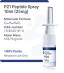 The P21 peptide spray is a high-purity research compound derived from Cerebrolysin's active fragment, specifically formulated for neuroscience and cognitive function studies. This research-grade solution (>98% purity) is designed for enhanced brain-blood barrier penetration and optimal bioavailability in laboratory applications, making it ideal for investigating neurogenesis, neural plasticity, neuroprotection, and BDNF modulation pathways. Suitable for in vitro and preclinical studies, this sterile-filtered solution is specifically intended for academic institutions, research laboratories, and neuroscience facilities conducting authorized studies on neurogenic compounds and cognitive enhancement mechanisms.